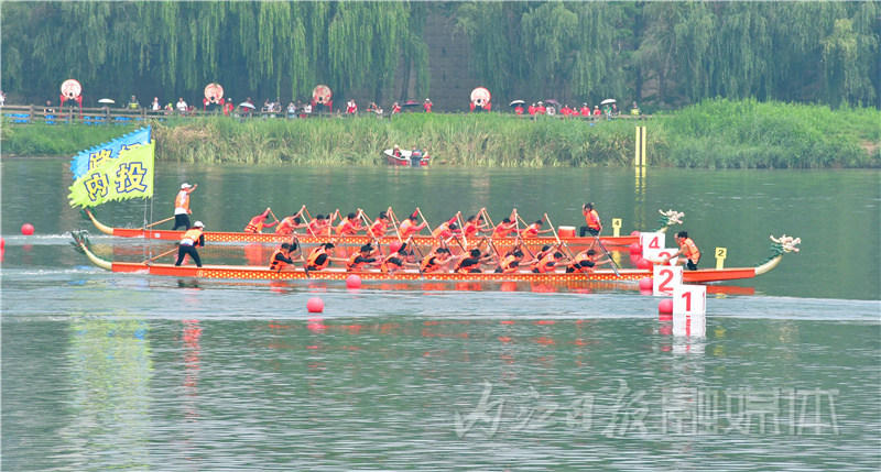 各队注意、预备、划!上午9时40分许,随着发令员的发令声,第一组出场的4支龙舟队如离弦之箭激烈角逐,他们谁能拔得头筹?“加油!加油!划呀!快……”现场观众的心此刻紧绷着,他们用尽全力为运动健儿们呐喊鼓劲。