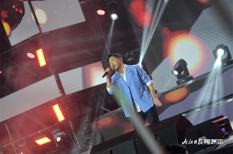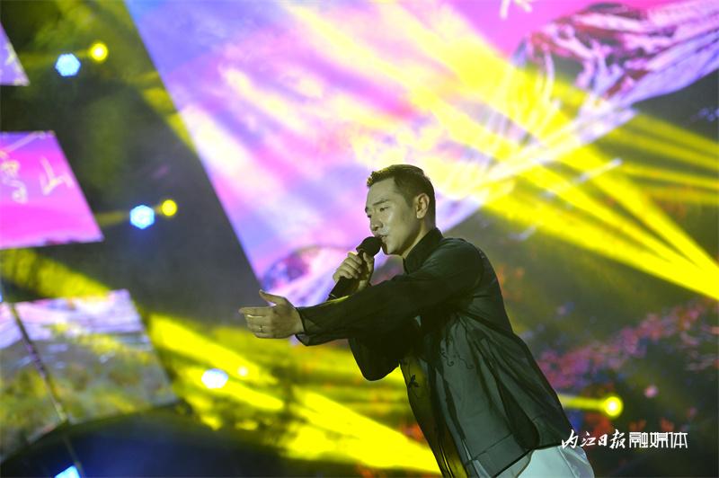 ▲6月19日晚,“东兴•中国天冬之乡”大型明星演唱会在内江市体育中心举行。图为歌手海来阿木在演唱歌曲。