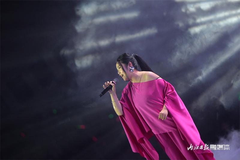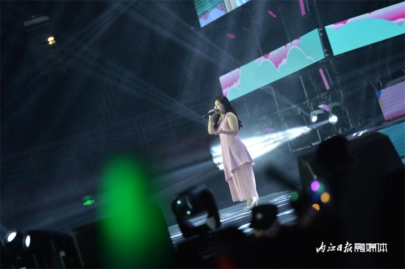 ▲6月19日晚,“东兴•中国天冬之乡”大型明星演唱会在内江市体育中心举行。图为歌手纪敏佳在演唱歌曲。