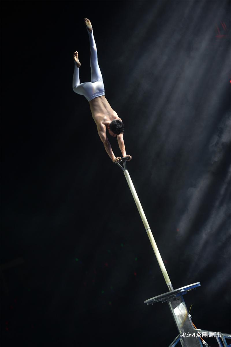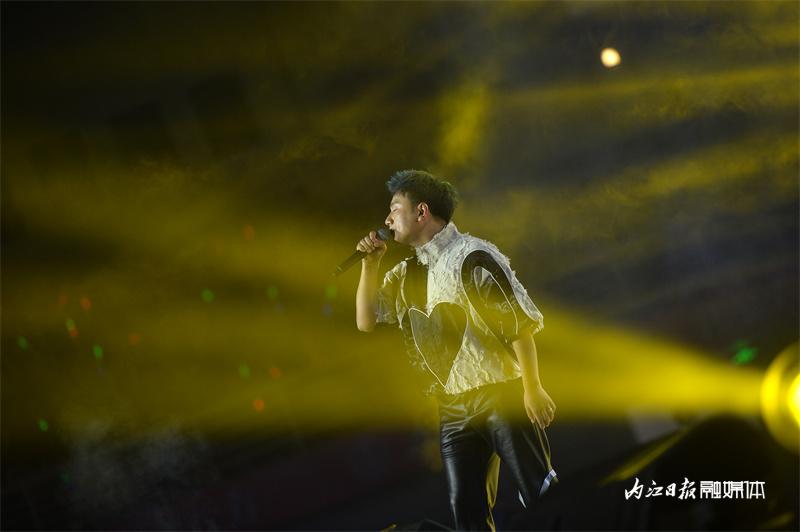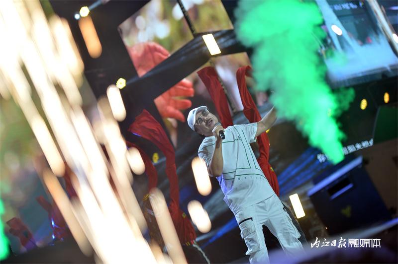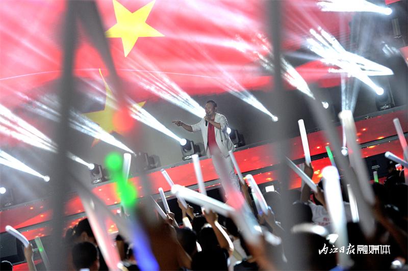▲6月19日晚,“东兴•中国天冬之乡”大型明星演唱会在内江市体育中心举行。图为尹中华在表演《太空漫步》。