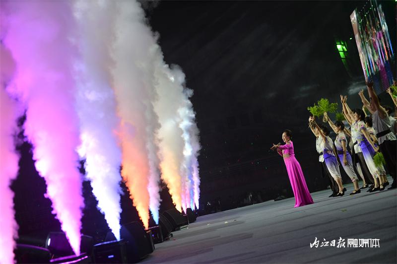 ▲6月19日晚,“东兴•中国天冬之乡”大型明星演唱会在内江市体育中心举行。图为舞蹈表演《花开锦绣》。