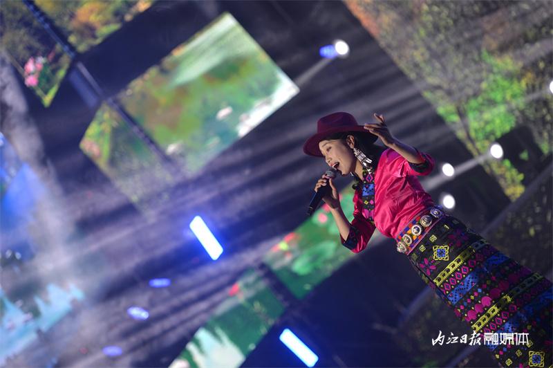 ▲6月19日晚,“东兴•中国天冬之乡”大型明星演唱会在内江市体育中心举行。图为歌手亚西在演唱歌曲。