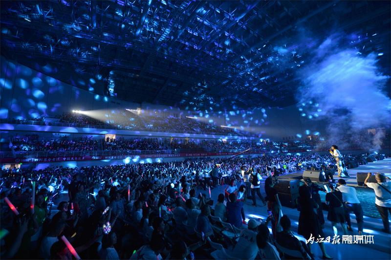 ▲6月19日晚,“东兴•中国天冬之乡”大型明星演唱会在内江市体育中心举行。图为演唱会现场。