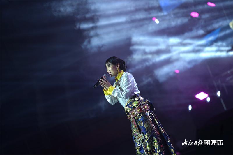 ▲6月19日晚,“东兴•中国天冬之乡”大型明星演唱会在内江市体育中心举行。图为歌手央金兰泽在演唱歌曲。