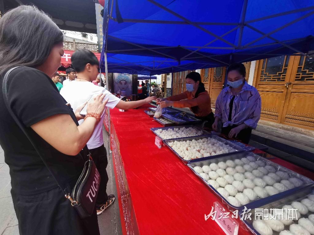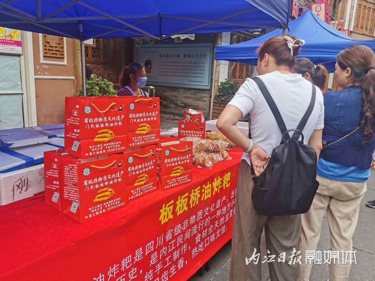 除此之外,现场展销的板板桥油炸粑,作为内江美食的一张响亮名片,起源于光绪年间,至今已飘香近200年,是很多内江人的家乡记忆。其展位前更是迎来一波又一波顾客,“这个油炸粑外酥里软、鲜香味美、酥而不腻,我们一家都非常喜欢。”家住东兴区新观街的田芬一次性购买了10个,满载而归。