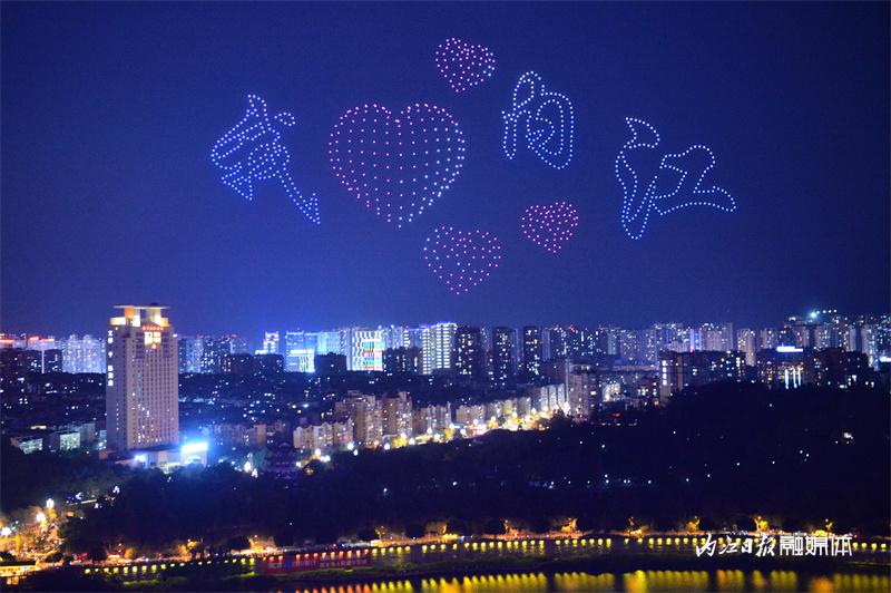 ▲6月24日晚,800架无人机灯光秀再次在内江上演。图为“我爱内江” 造型。