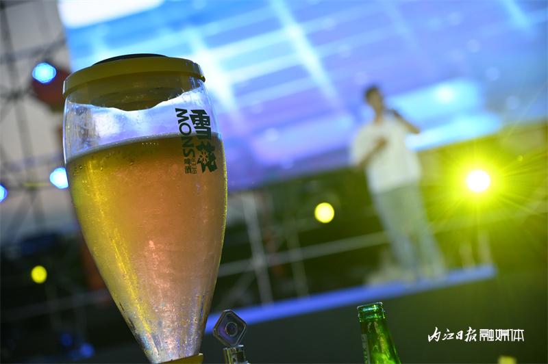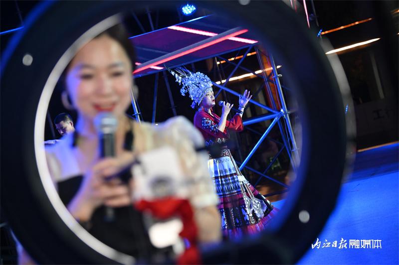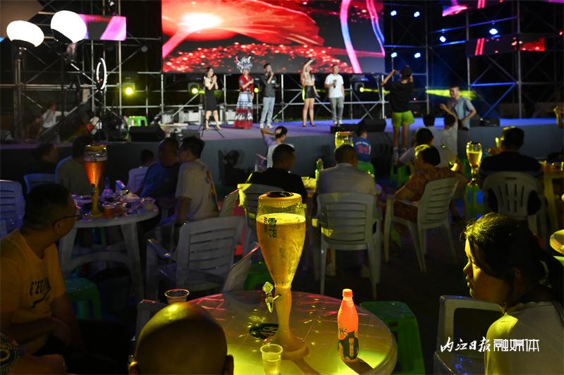 活动现场,“甜城华仔”“重庆辣妹”“甜城慧儿”“隆昌林莉兄妹组合”等网红达人现场放歌,为观众带来了《三月里的小雨》《内江人》《听心》《神奇贵州》《明月夜》《爱拼才会赢》《如果爱还在》《可可托海的牧羊人》《明天会更好》等流行歌曲,活动中途还进行了有奖游戏互动和酒王争霸赛,观众一边喝酒一边欣赏音乐,嗨翻了。