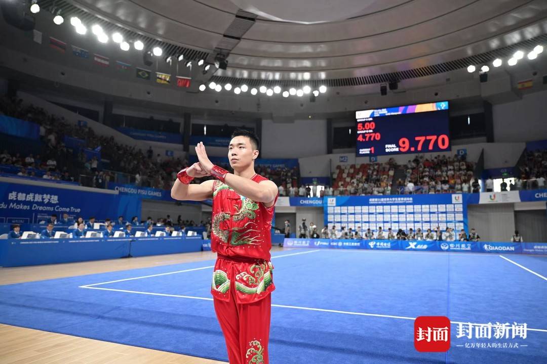 7月29日,成都第31届世界大学生夏季运动会诞生首枚金牌,四川籍、成都体育学院武术选手曹茂园在武术套路男子南拳比赛中发挥完美,以9.770分摘得金牌。