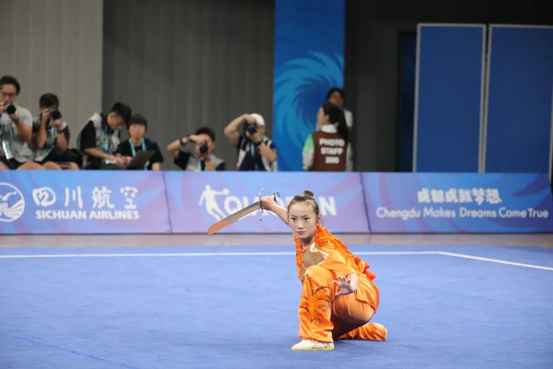 7月29日上午,成都大运会武术项目女子南刀决赛在城北体育馆进行,中国队运动员宋翠芳发挥出色,以9.666分获得冠军,为中国代表团再添一枚金牌。