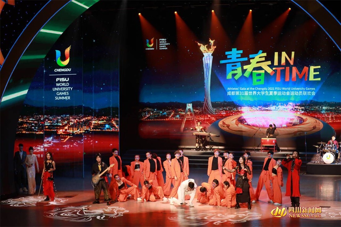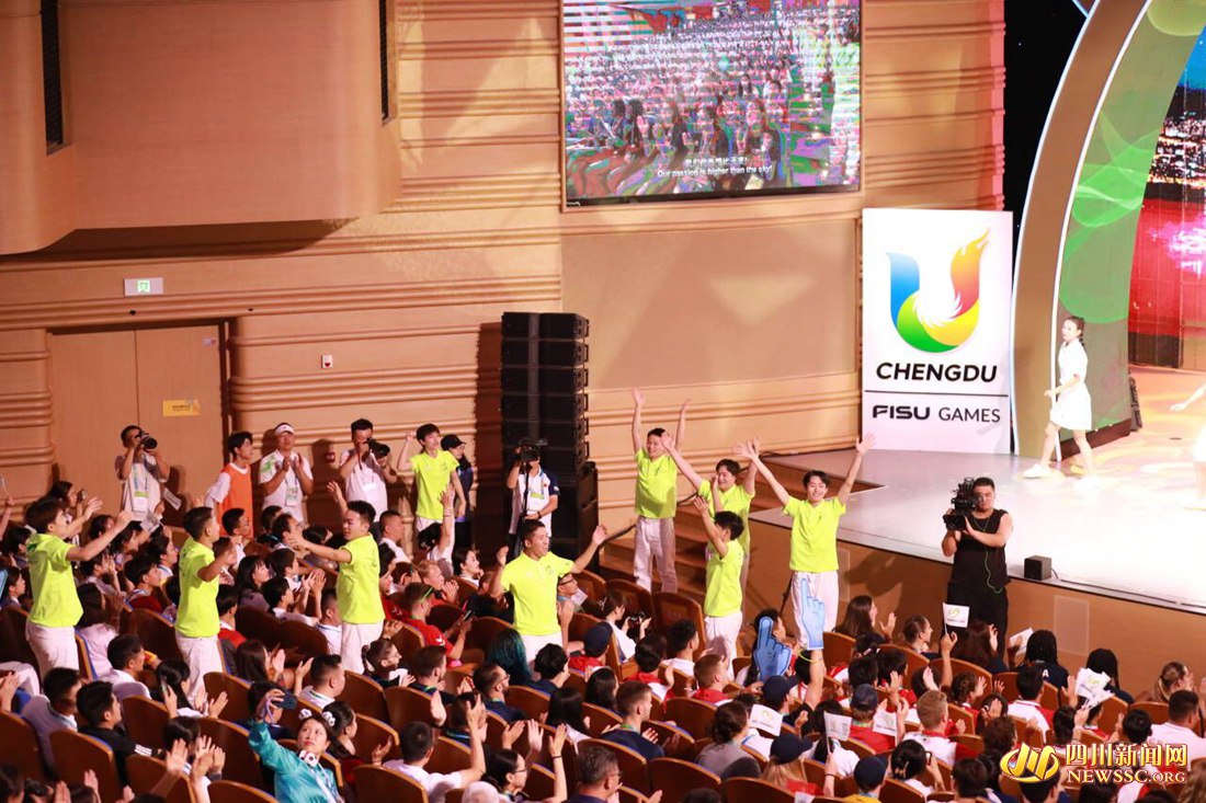 7月29日,“青春 in Time”第31届世界大学生夏季运动会运动员联欢会在大运村艺术中心大剧场精彩上演。
