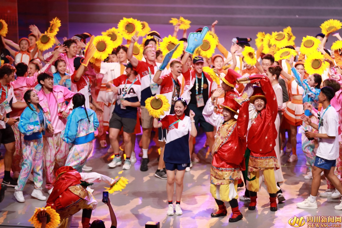 这场融合中国风、巴蜀韵及国际范的联欢会,以民乐、舞剧、武术、说唱、街舞、魔术等形式,呈现传统与现代、东方与西方的文明对话交流。正在参加成都大运会的运动员们与中外青年艺术家、志愿者代表等热情参与了属于他们自己的“青春派对”。