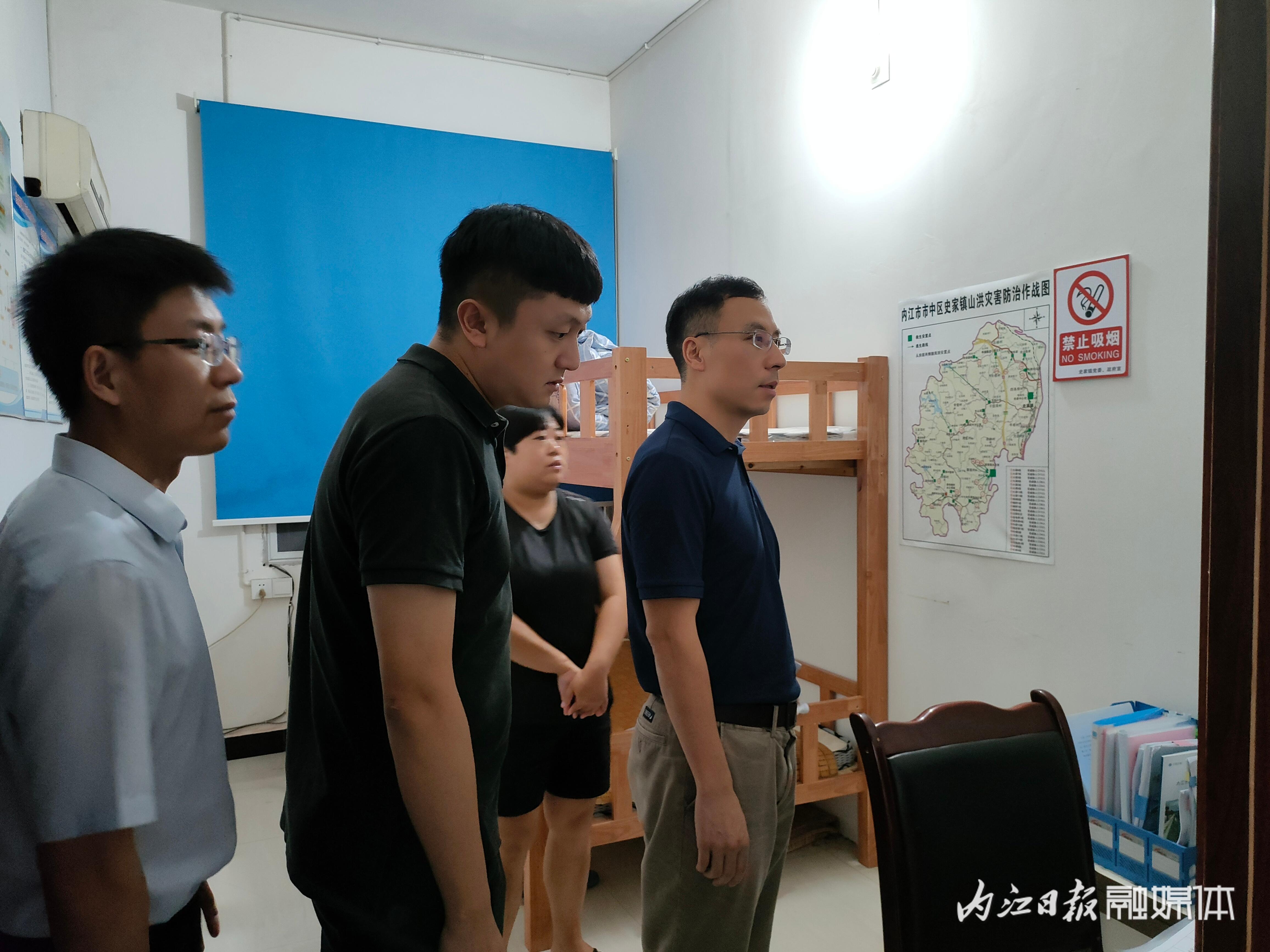 当晚9点,第九督导组采取“四不两直”的方式,突击暗访内江市市中区史家镇、东兴区富溪镇和资中县银山镇三个镇的防汛值班值守、救援物资准备预案是否完善、应急值守人员是否知晓各自应急救援工作职责、是否按规定开展地灾演练,储备的应急物资是否能使用,是否按照《内江市防汛抗旱指挥部办公室关于切实加强主汛期应急值守工作的通知》(以下简称《通知》)要求做好了应急值班值守工作。