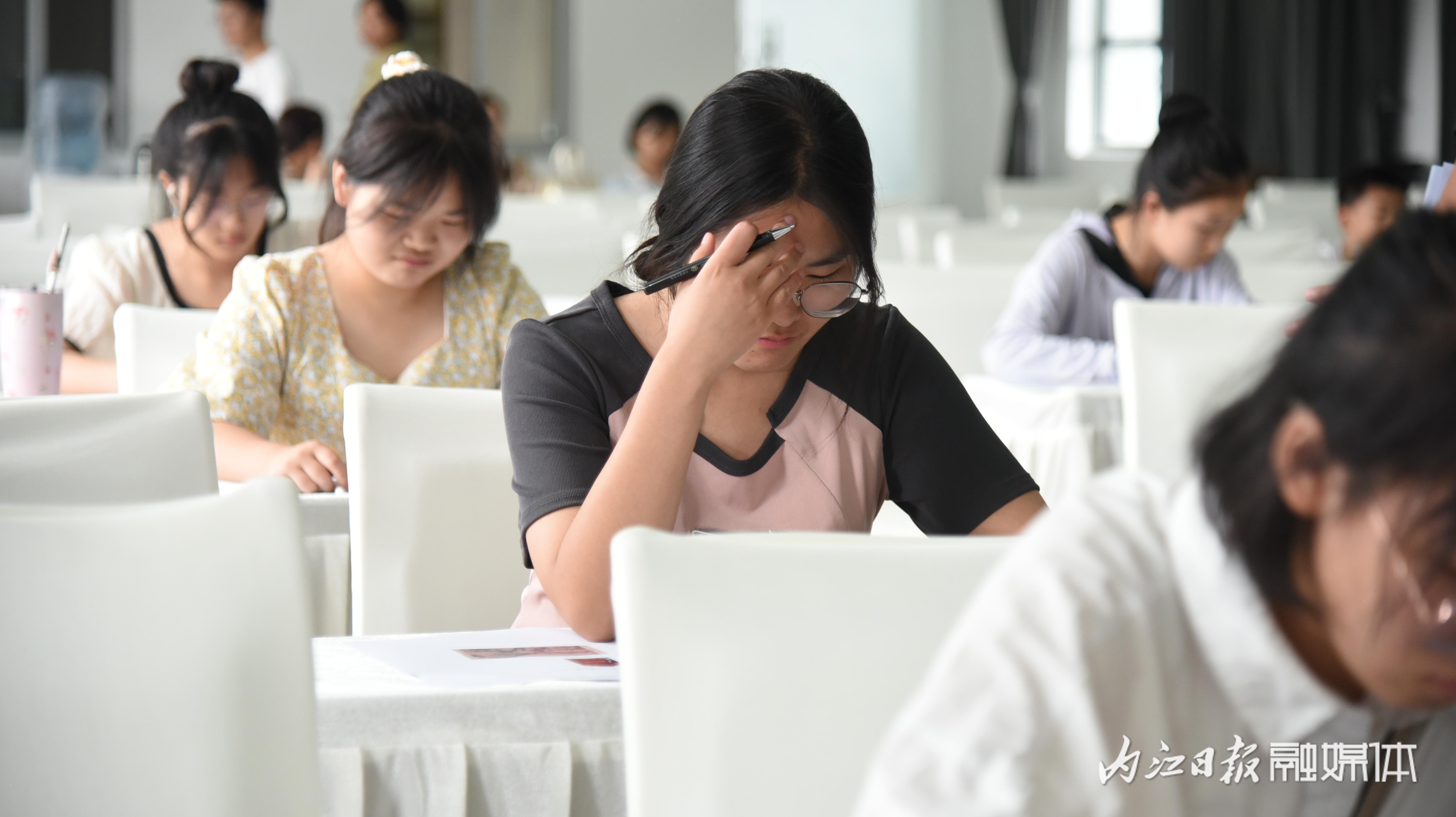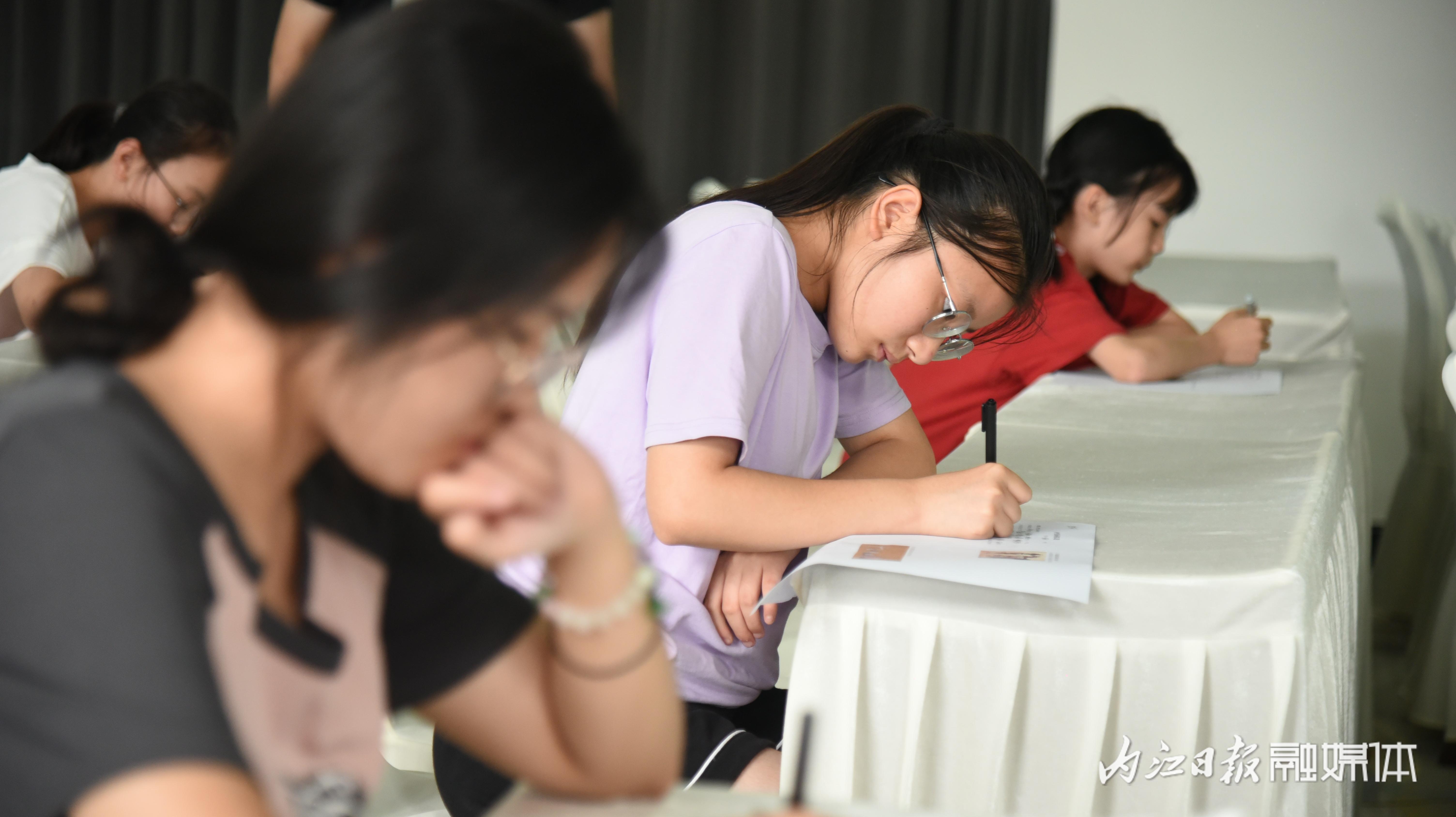 ▲7月17日,内江市“大千画派”青少年书画传习“青苗”培育计划国画班举行的理论知识测验中,选手认真答题。