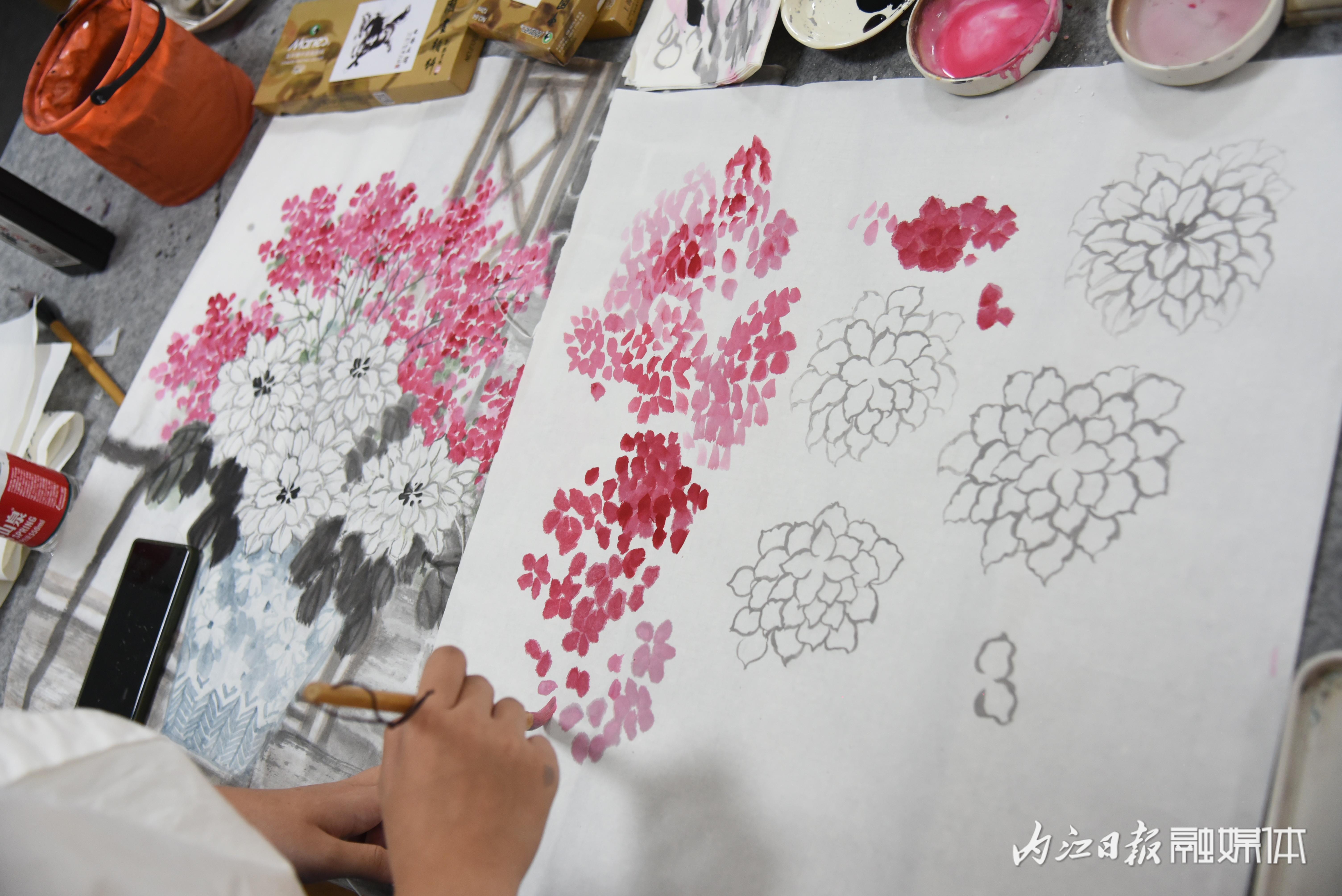 ▲7月17日,内江市“大千画派”青少年书画传习“青苗”培育计划国画班举行创作实战测验。
