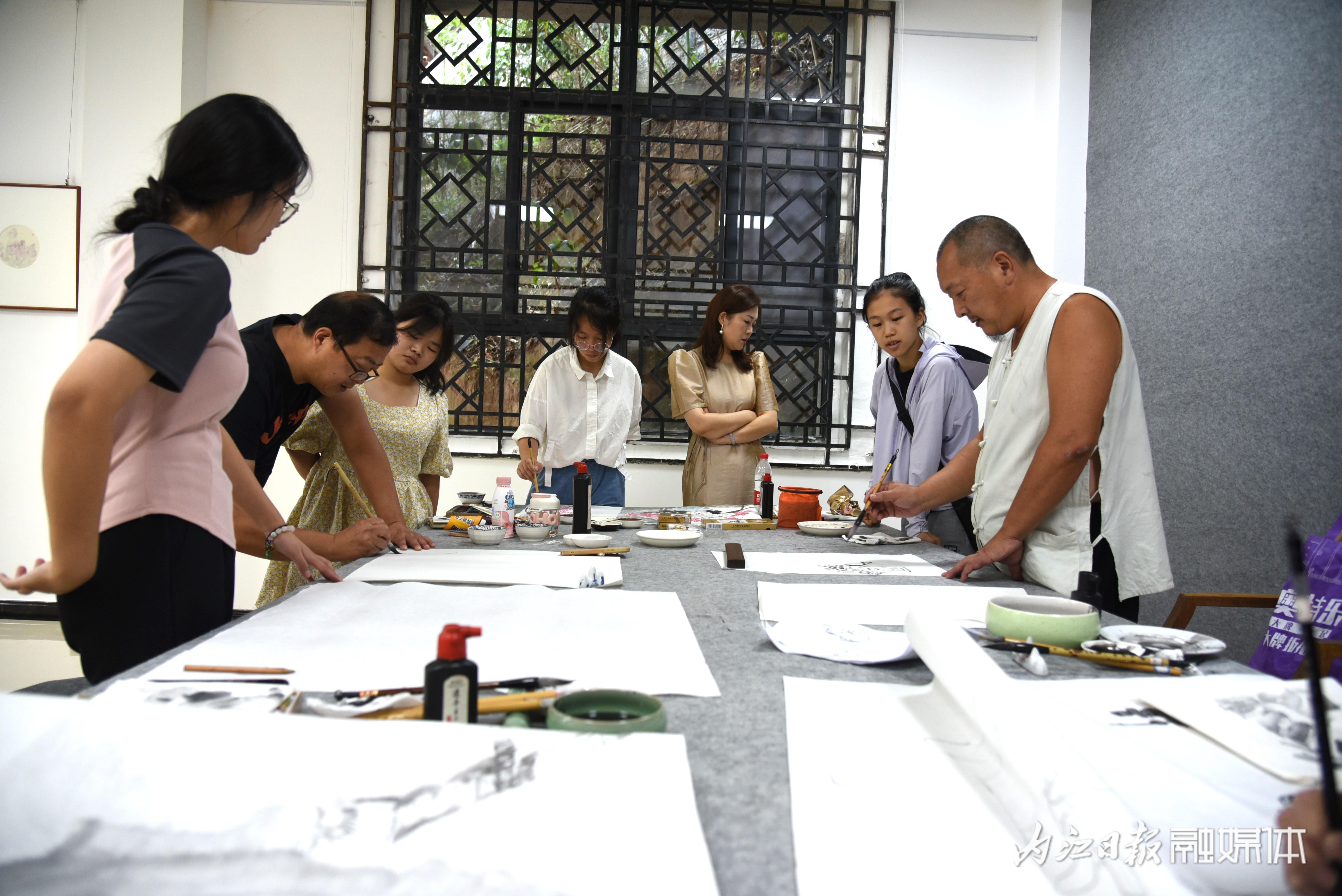 ▲7月17日,内江市“大千画派”青少年书画传习“青苗”培育计划国画班举行线下培训,导师现场指导学员创作。