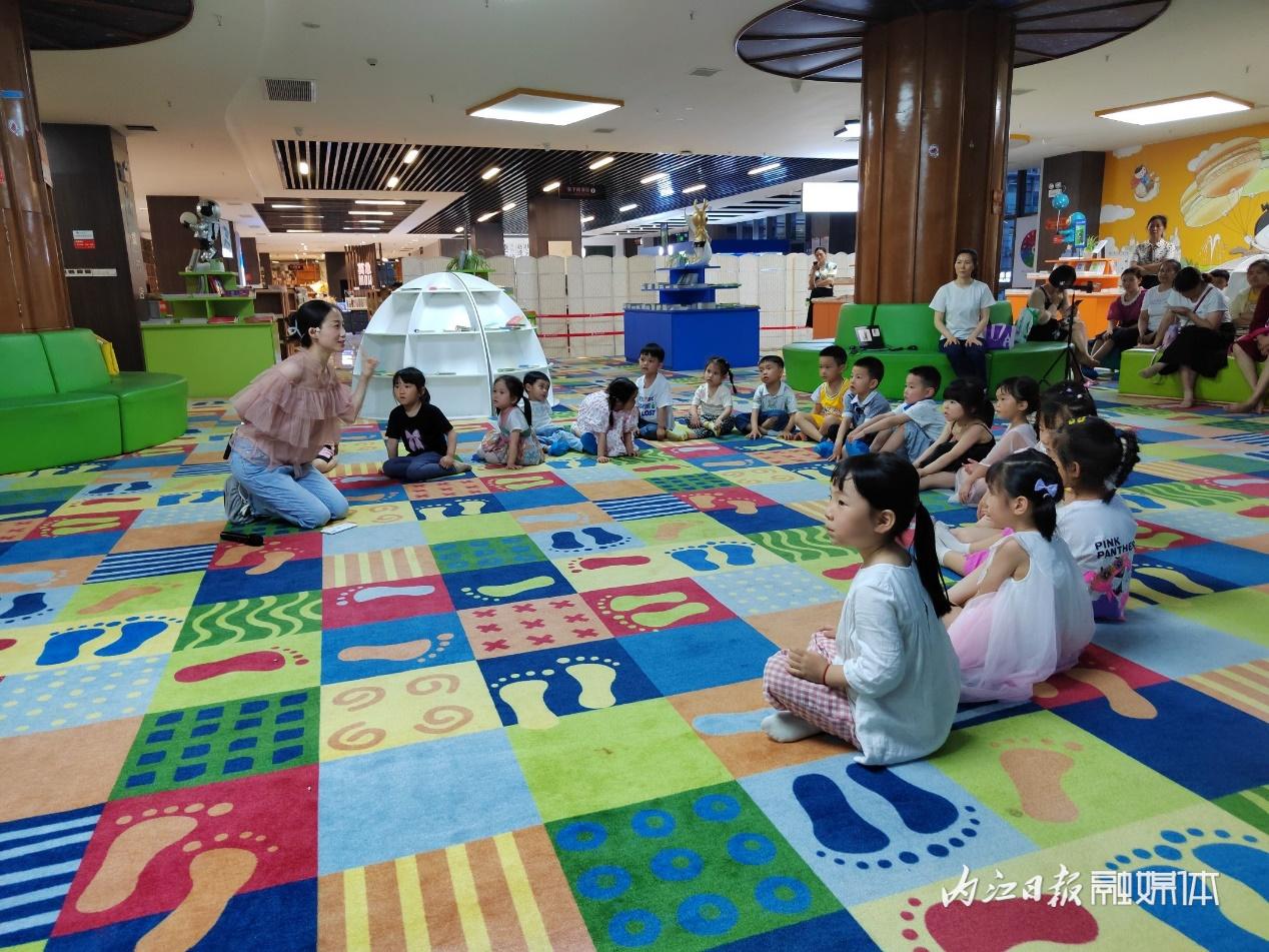 “童来童往”亲子活动中,孩子们聚精会神听管理员老师讲绘本