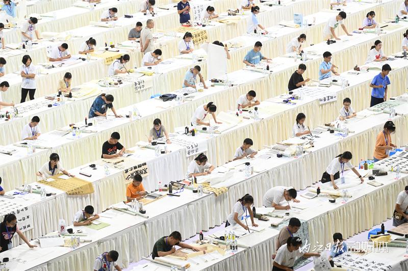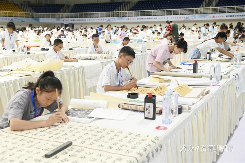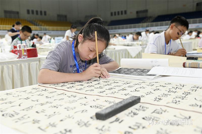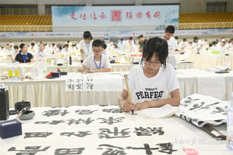 当日,第二届青少年书画传习大会全省决赛在内江举行。来自全省的600余名青少年以文会友,同台挥毫泼墨,展示青春风采,弘扬中华优秀传统文化。