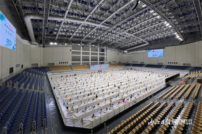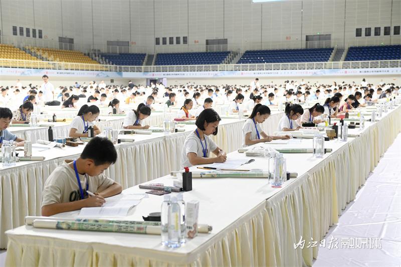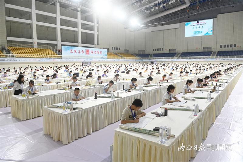 ▲8月23日,内江市体育中心,参赛选手在进行书画素养的比拼。