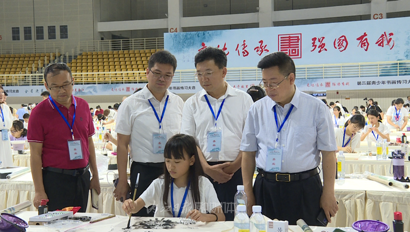 8月23日,第二届青少年书画传习大会全省决赛在“大千故里、书画之乡”内江开赛,来自各市(州)的600余名青少年以“文化传承 强国有我”为主题比拼技艺、展示风采、传承文脉。中国美协理事、中国雪山画研究会主席、省文联副主席、大会专家委员会主任李兵,市委常委、宣传部部长、市总工会主席蒋学东巡视比赛。