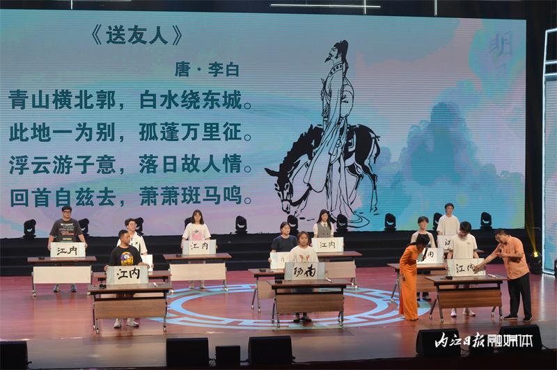 ▲8月24日晚,第二届青少年书画传习大会嘉年华之夜在内江师范学院苌弘剧院举行。图为中国书画知识互动。