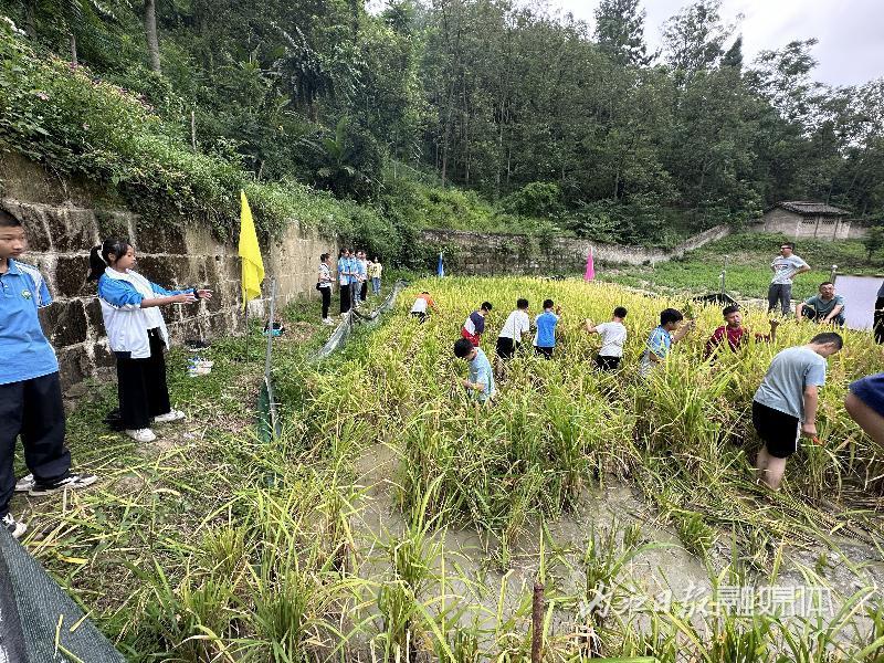 越溪镇中心学校的开学第一课,从收割稻谷开始。八年级的学生们走进劳动试验田收割稻谷,开启一场农耕体验。