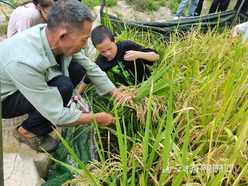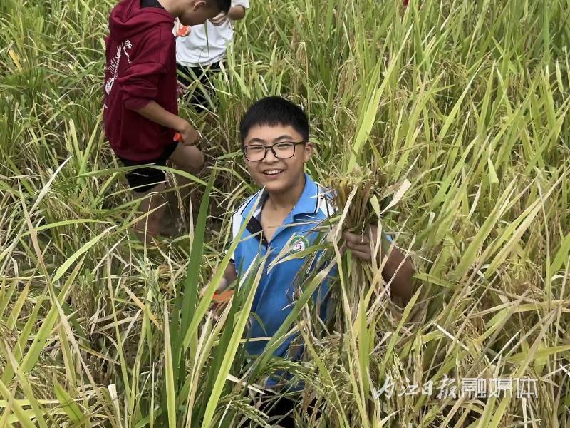 大家扎好裤腿、手握镰刀,认真听农民伯伯讲解收割要领,并在其示范后、走下田里,收割稻谷、体验丰收的喜悦,在劳作中体会“粒粒皆辛苦”的真正含义。