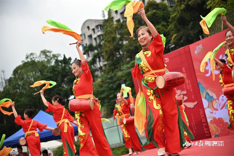 ▲9月22日,大美汉安文化广场——2023“迎国庆·颂中秋”汉安腰鼓舞展演在内江吾悦广场举行,图为活动现场。