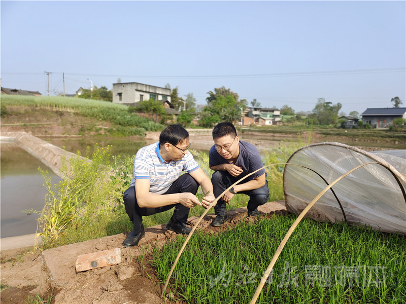 陈勇深入田间地头查看水稻生长情况