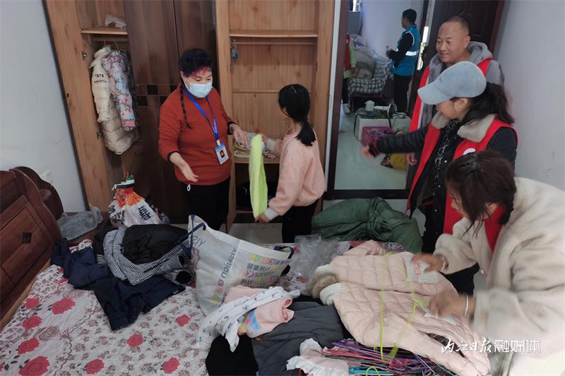 志愿者们将皮卡车上的行李搬进新家,他们一手一个包裹,喘着粗气,一趟又一趟地搬运。行李搬完后,志愿者们又忙着帮爷孙俩收纳衣物,小辛也一起整理。“我和爷爷的衣服要分开放,夏天的放柜子最里面,冬天的放外面,拿的时候方便。”小辛很有主见。