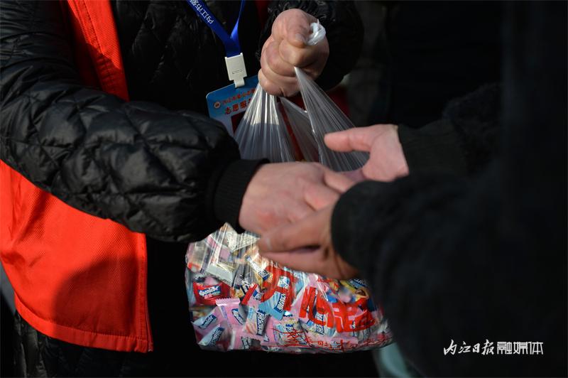“阿姨,您住在这里习不习惯?生活得好不好……”志愿者详细询问精神障碍患者的健康和生活情况,并将糖果分发到每位患者手中。