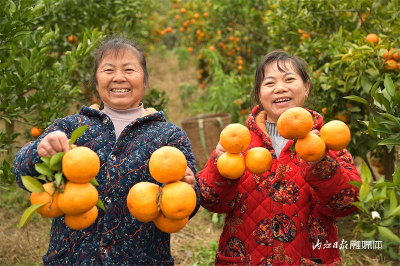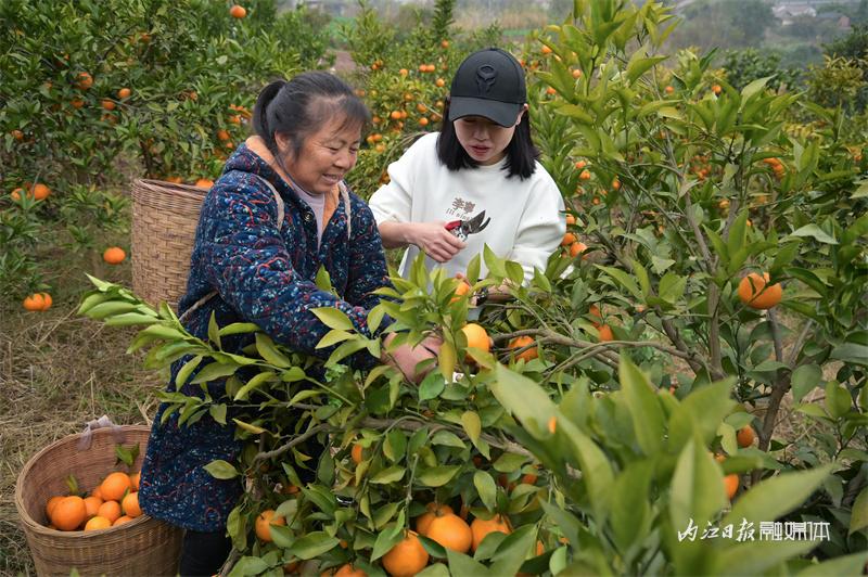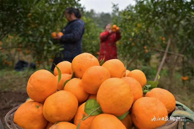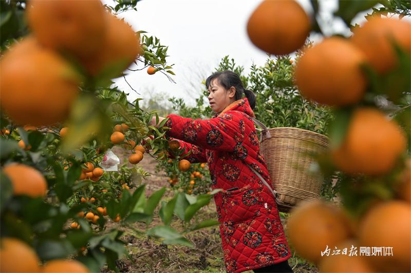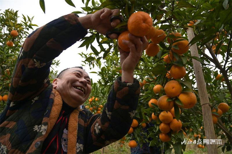 当下正值耙耙柑成熟上市的季节,1月4日上午,记者走进内江市东兴区双才镇双才社区一耙耙柑种植园看到,黄澄澄的耙耙柑挂满枝头,果农正采摘鲜果供应市场。