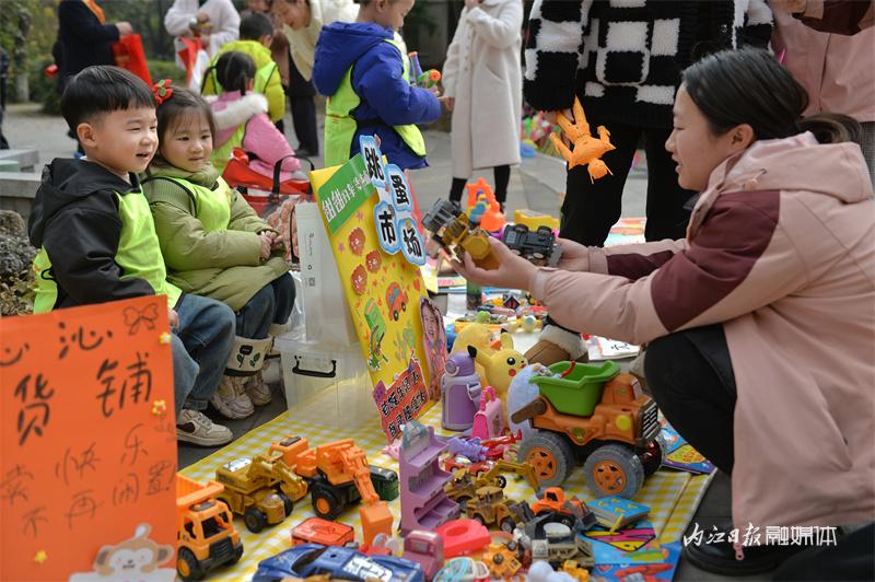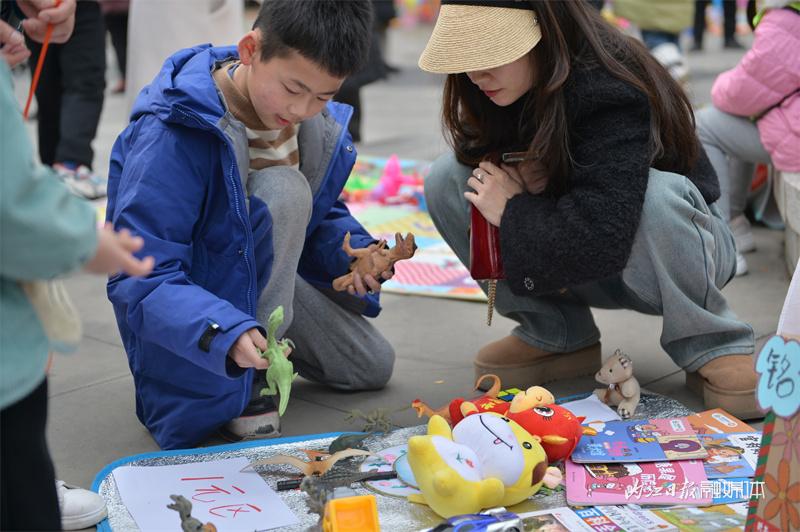 活动现场,孩子们在志愿者和家长的陪伴下,将义卖的各种商品摆放在各自摊位上,图书、文具、玩具、饰品、零食等应有尽有,前来选购商品的市民和孩子络绎不绝。