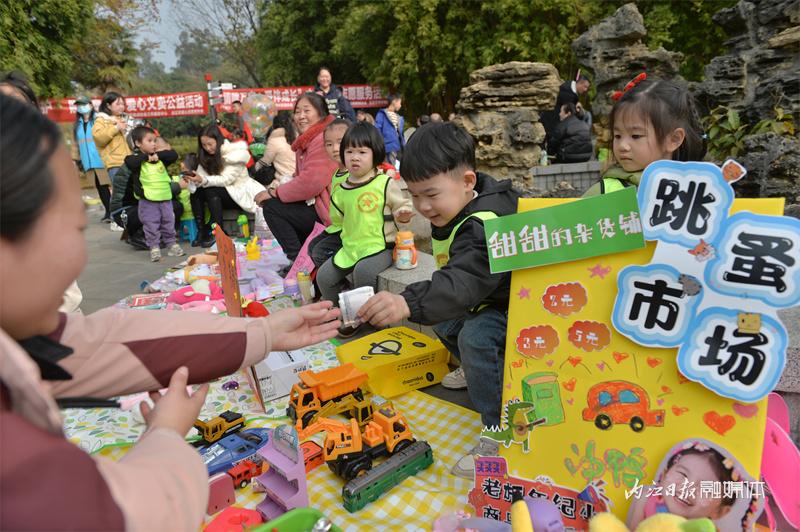 1月6日下午,位于内江市东兴区大千园的内江市新时代文明志愿服务V站热闹非凡。由内江市东兴区起点社会工作服务中心、内江市爱心志愿者协会主办的“爱心守护 照亮童年——爱心义卖公益活动”在此举行。