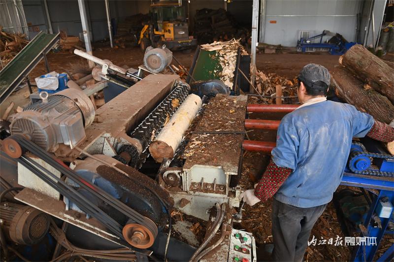 “晒干后的木片将被叉车转运回加工厂打包,再装车发货到山东的热压厂二次加工,被制成各类家具板材销往全国各地。”今年47岁的郑泽是加工厂的负责人,他在外务工时就是做木材加工方面的工作。2023年10月,他返乡创办了木材加工厂。目前,加工厂月加工木材可达1000吨,固定用工12人。