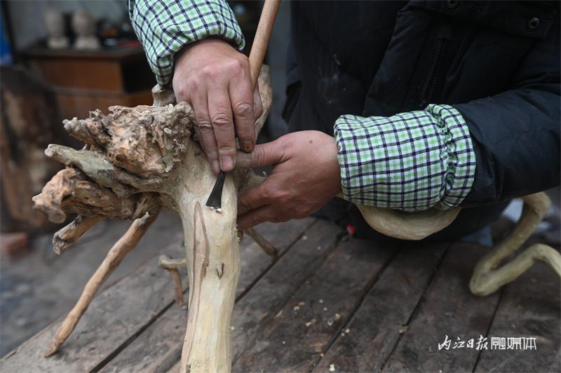 有了之前的玉雕基础,雕刻木头对冯泳来说游刃有余,他创作出的部分根雕、根艺作品被爱好者购买收藏。