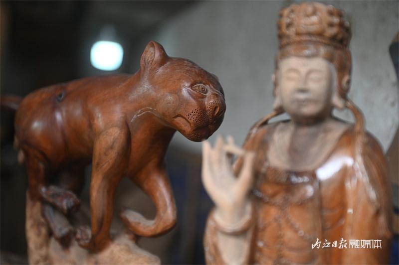 后来,冯泳在捡石头的过程中,发现沱江河中有很多乌木、金丝楠木等名贵木材,这些都是木雕的好材料,从此,冯泳开始以雕刻乌木为主。