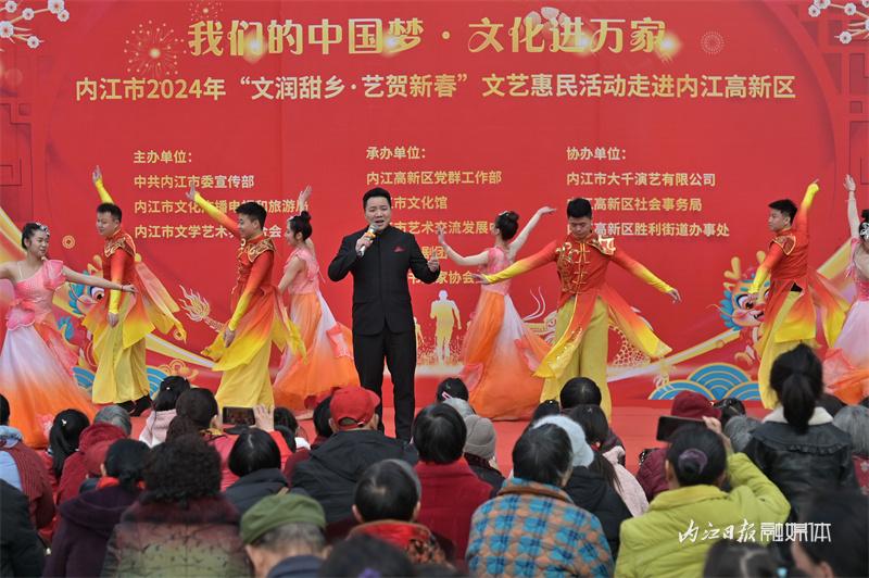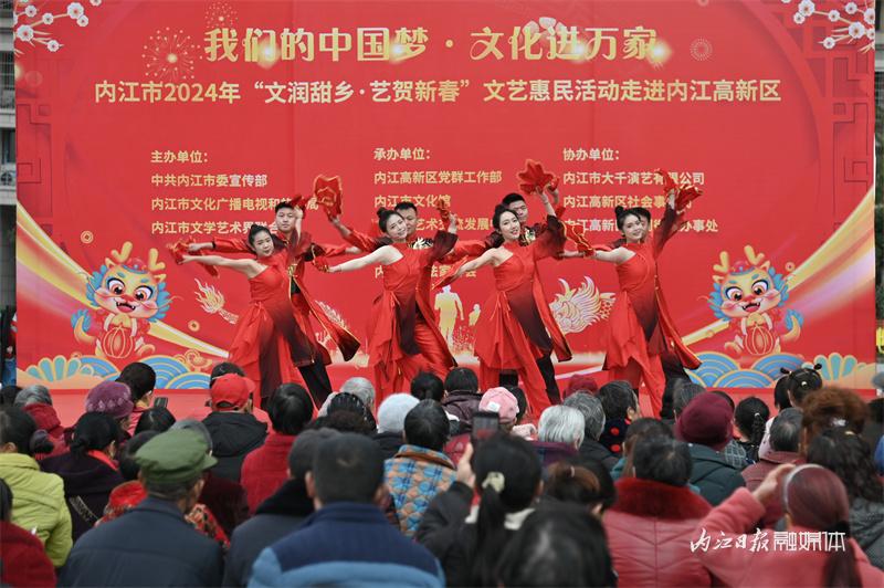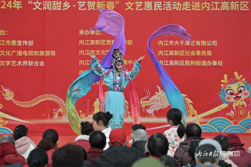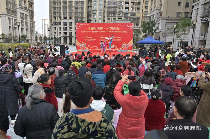 1月17日,“我们的中国梦·文化进万家”内江市2024年“文润甜乡·艺贺新春”文艺惠民巡演走进内江高新区胜利街道新立社区,吸引了众多市民观看。