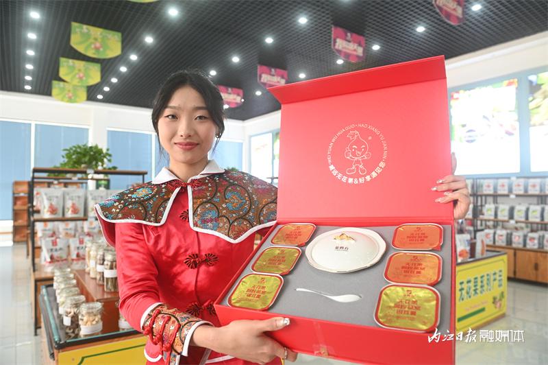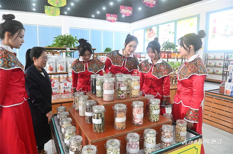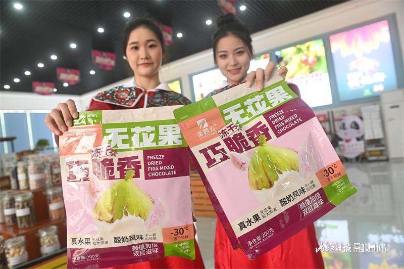 无花果冻干、无花果膳食纤维棒、无花果阿胶燕窝银耳羹……来到企业无花果产品展厅,货架上整齐摆放的各式果干、果茶、果酒等特色产品受到甜女们的“热捧”。