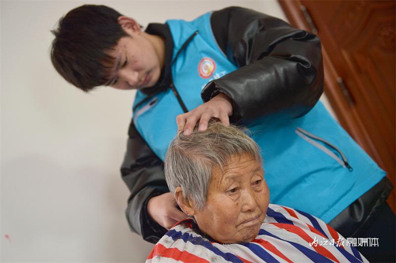 志愿者给老人理发