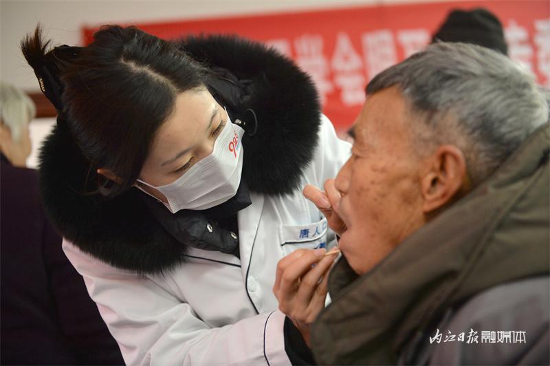志愿者给老人检查口腔