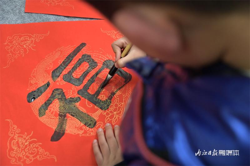 不一会儿工夫,各式各样的福字和窗花作品被孩子们创作出来。志愿者和到场的家长纷纷拍照,记录下美好时刻。