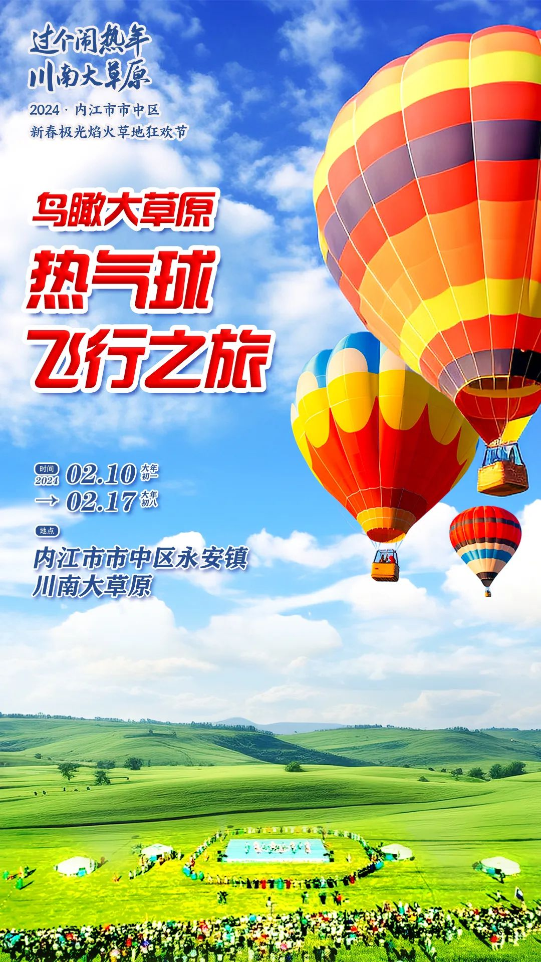 昨日,记者从“龙腾汉安 草原盛会”“五粮春”2024·内江市市中区新春极光焰火草地狂欢节活动主办方了解到,作为狂欢节13项重磅子活动之一的“鸟瞰大草原”热气球飞行之旅,将在内江首次集中亮相。主办方不惜投入巨资,邀请国内顶尖的专业热气球飞行团队和专业热气球飞行员,为内江广大市民和游客带来一次难忘的空中体验。