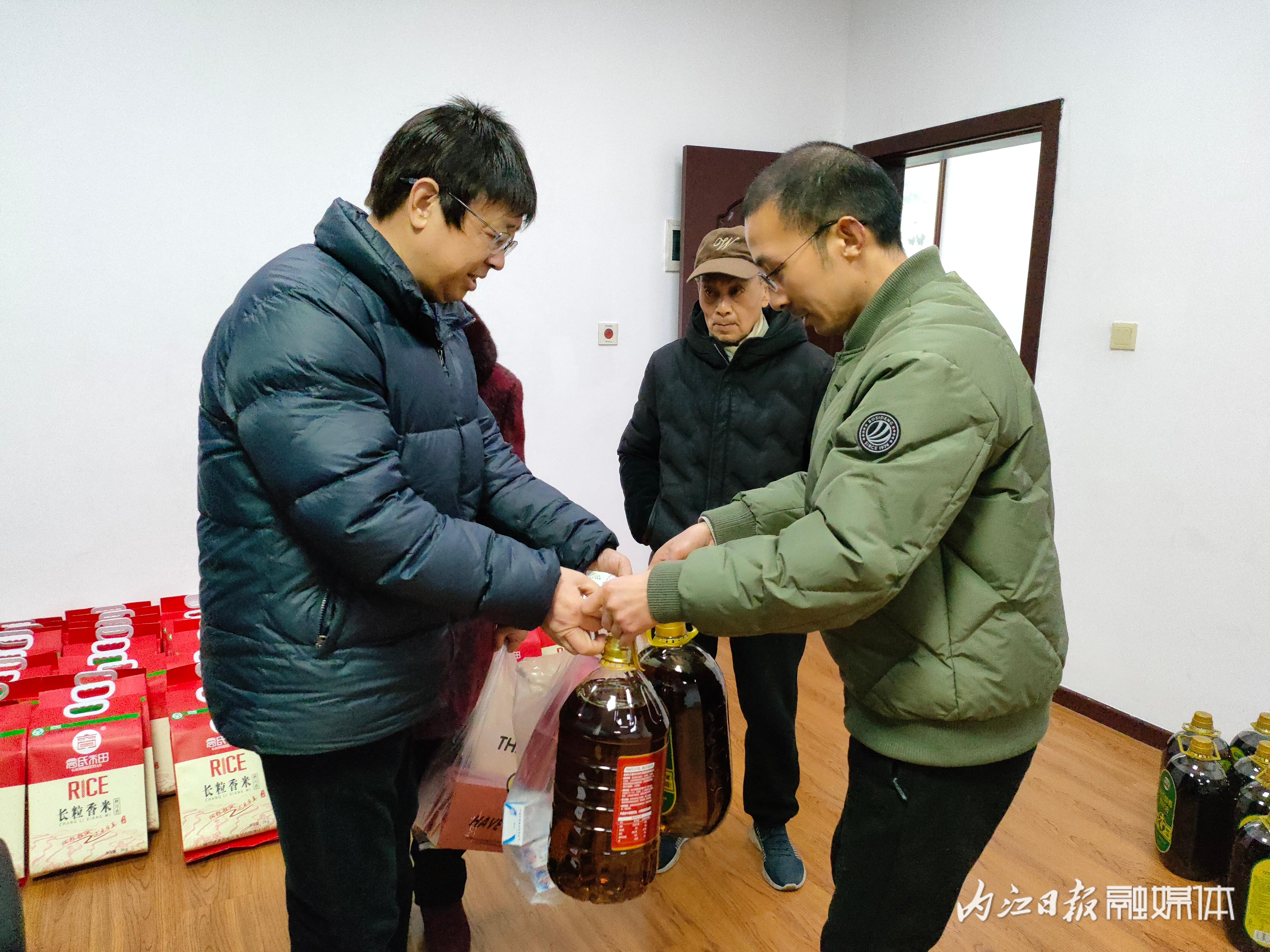 活动结束,工作人员为军休干部及干部遗孀发放了米、油等春节慰问品及慰问金。