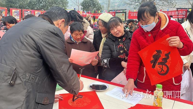“东风遍天下 春色满人间”“风暖日光丽 气清天宇高”……活动现场,市中区书画家及书法爱好者挥毫泼墨、笔走龙蛇,将美好祝愿化作一副副充满喜庆、寓意吉祥的春联和一张张“福”字。前来领取春联和“福”字的群众络绎不绝,在城东街道文化综合服务中心工作人员及黄桷井社区网格员、志愿者引导下,大家仔细斟酌作品,挑选各自心仪的春联带回家。