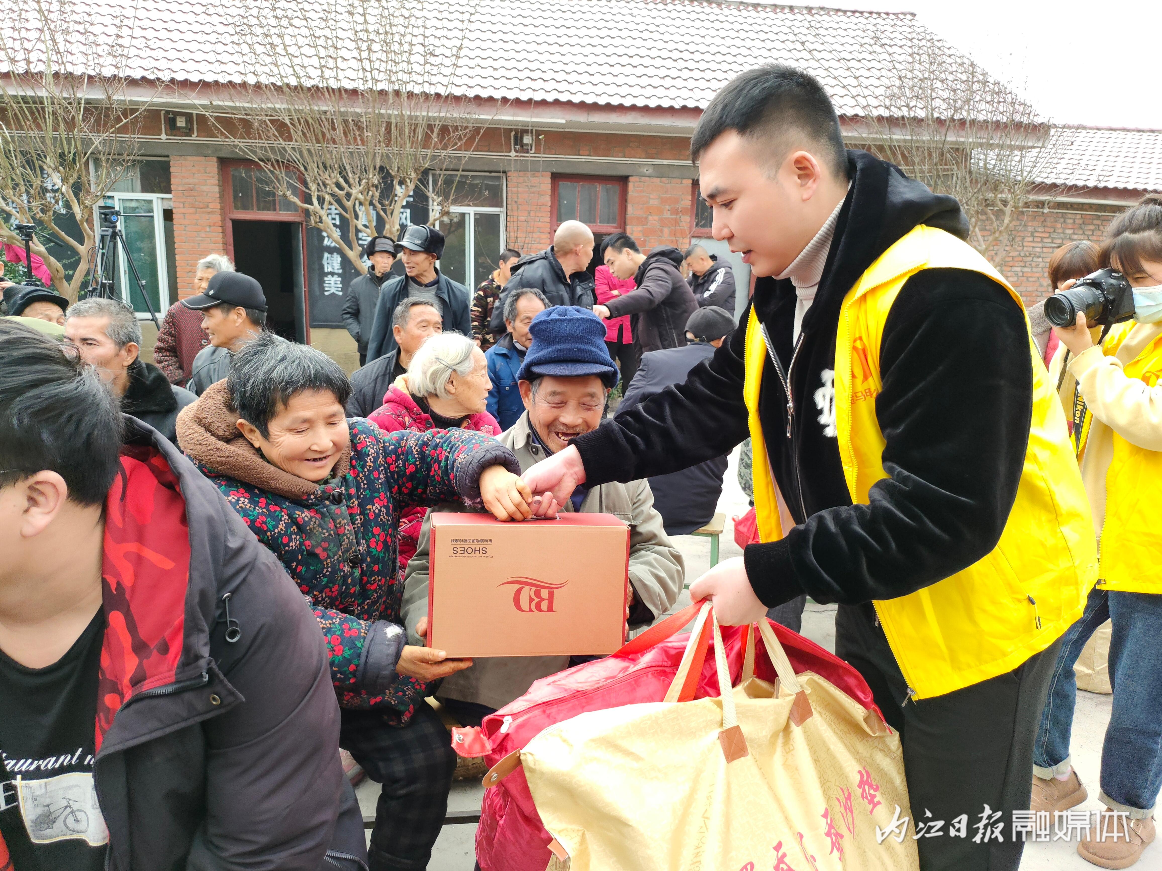 2月1日,春节来临之际,内江“金马甲”公益团队走进市中区朝阳镇周坡村,为该村贫困户、残疾人士等困难群体送上蚕丝被、蚕沙垫、按摩鞋等暖冬物资或慰问金,用爱心诠释责任,把浓浓的关怀和温暖送到他们心中。
