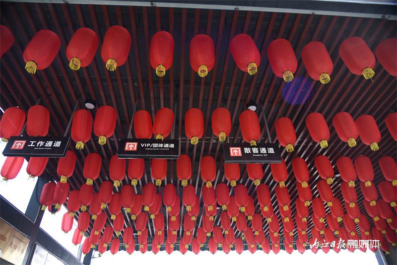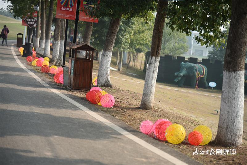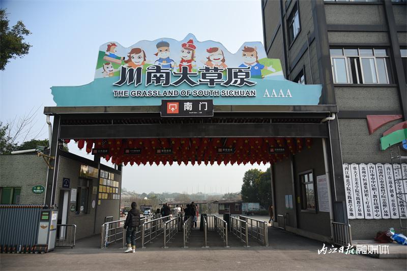从川南大草原南门进入景区,门口挂满火红的灯笼,映入眼帘的一道植物长廊,长廊两面,七彩风车随风旋转。穿过走廊继续往前,一路上各式彩灯高高悬挂,园区内标识、标牌、彩旗、灯笼、打卡点焕然一新,新春年味儿在景区弥漫。