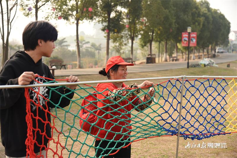 “来,今天把场地搭好,明天进行测试,一定要确保安全性和可玩性……”2月1日,市中区川南大草原景区内,“沙雕运动会”活动负责人王红文正组织工人对场地进行打围,彩色的防护网在铁栏杆上蔓延,将草地划分为几块不同大小的区域,每一块区域都将是一场精彩比赛的举办地。