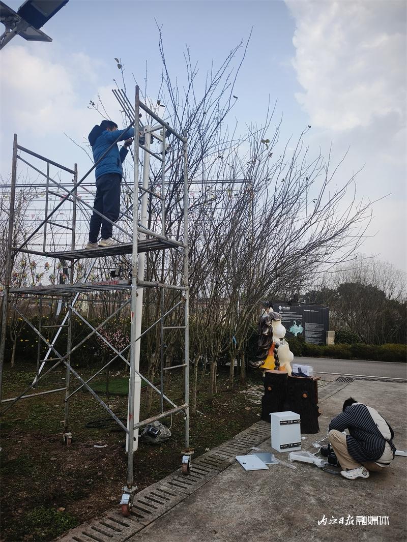 景区内,连绵起伏的山丘之间,大片草坪还未脱尽冬装,已有一棵棵小草冒出嫩绿的新芽;红梅盛放,连成一片粉红花海,暗香涌动,明媚动人。家住市中区永安镇枷担湾村的村民郭淑兰正在一处草坪里与大家清理杂草。“家乡已经很久没有这么热闹过了,今年景区搞活动,大家都很期待,终于又可以过一个热闹年了。”郭淑兰说道。