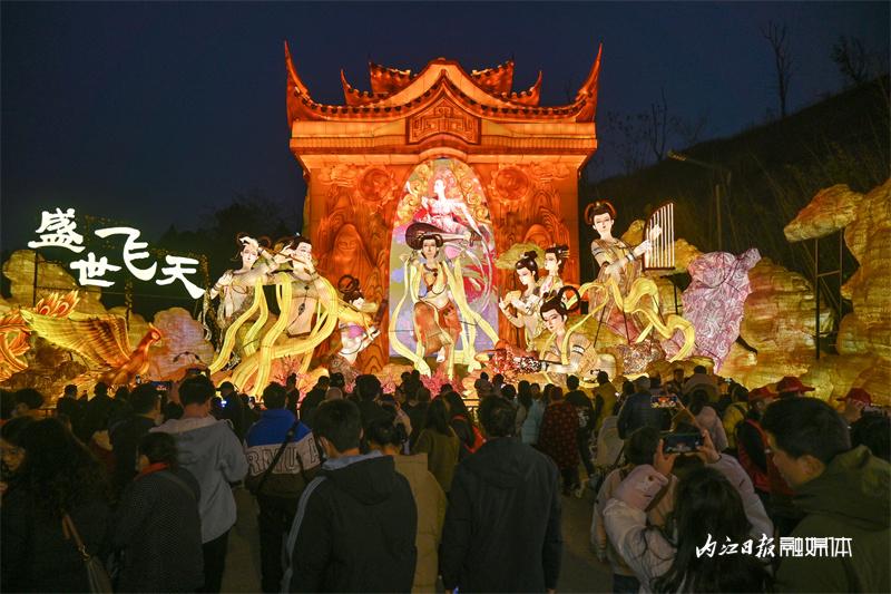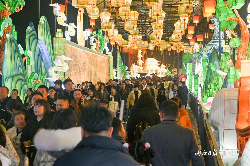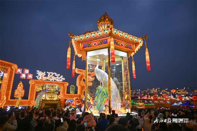 据悉,本届灯会在波澜壮阔的中华五千年文化长河中撷取素材,通过半年的创意策划,60天匠心制造,以时间为主轴,传统与现代交相辉映,融入“王者荣耀”“泡泡玛特”等顶流IP,精心打造“华夏乐章、盛世欢歌、年味中国、浪漫中国”四大板块,尽力为各方宾朋奉献一场流光溢彩、喜气洋洋的视觉盛宴。