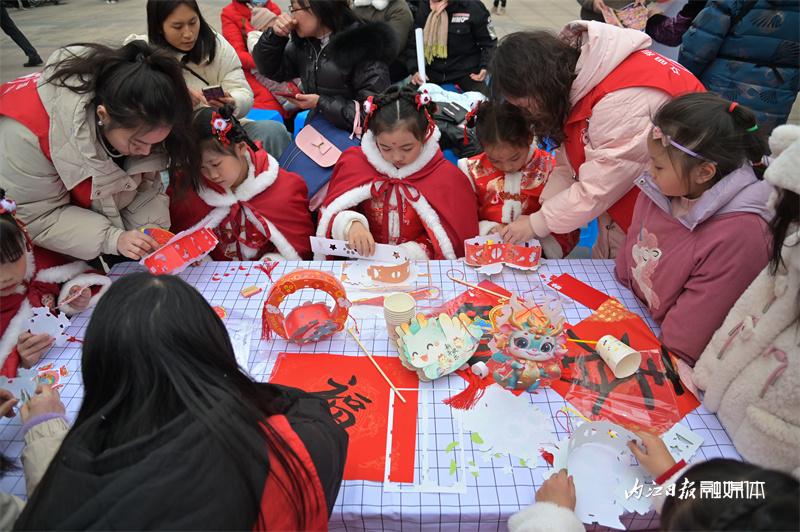 “家门口看演出,安逸!还拿了春联和日历,娃娃也很开心,动手制作龙灯、剪窗花,收获满满,活动办得很有年味儿!”家住附近的市民廖丹阳表示。